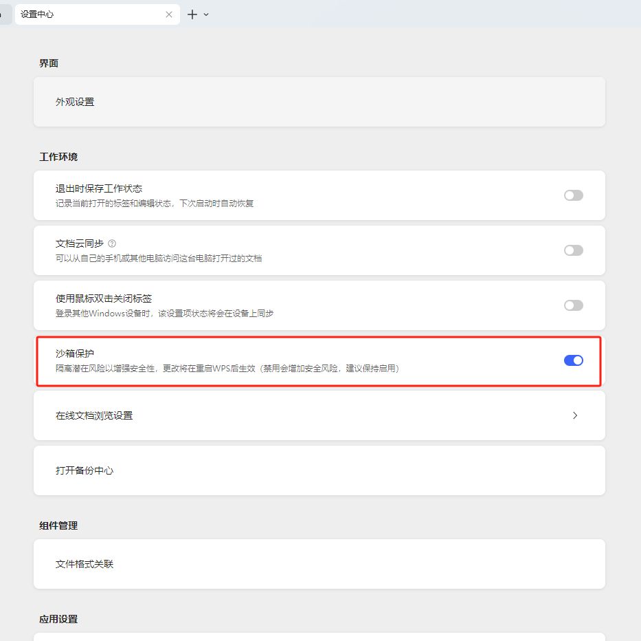 试了半天,终于找到这个报错原因,这是WPS中沙箱保护阻止执行shell,这个报错需要关闭WPS Office 中【设置中心】->【沙箱保护】功能关闭,这样才能使用JSA调用shell执行exe或者bat