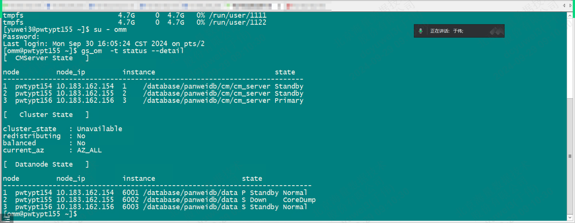 其他同事检查数据库对象,集群主节点发生CoreDump。