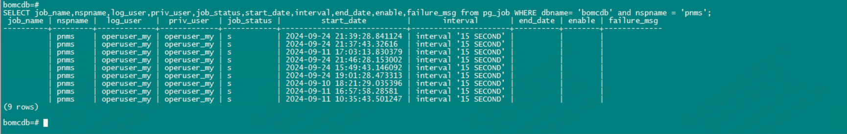 江西移动现场准备割接上线的磐维数据库集群,在迁移测试阶段应用侧有创建定时作业的需求,DBA测试创建定时作业用例。