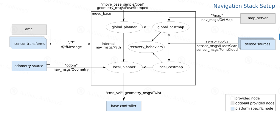 图中,白色部分是move_base必须有的且已经实现的部分,灰色是我们可以提供的,蓝色是必须需要的。