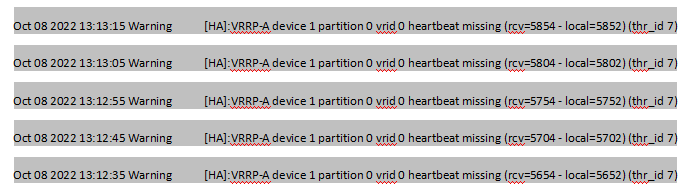 我们有两台A10设备出现心跳异常,两台设备都没办法互相ping通对端心跳IP;其中1台设备的LOG日志出现大量VRRP-A异常记录