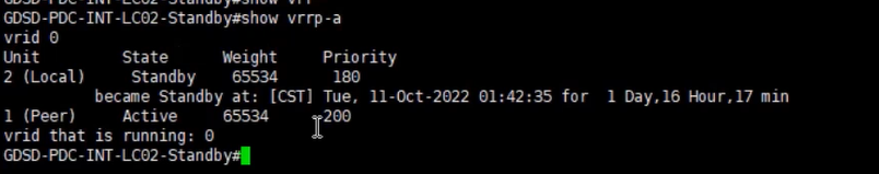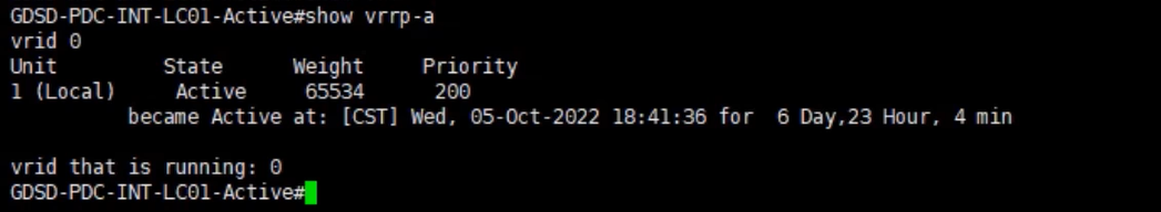 d.在LC01和LC02上使用show vrrp-a命令检查vrrp-a状态,LC01无法发现LC02 ,LC02却可以发现LC01: