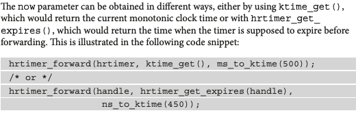 从现在now开始前移有一个专门的函数:u64 hrtimer_forward_now(struct hrtimer *timer, ktime_t interval) ;