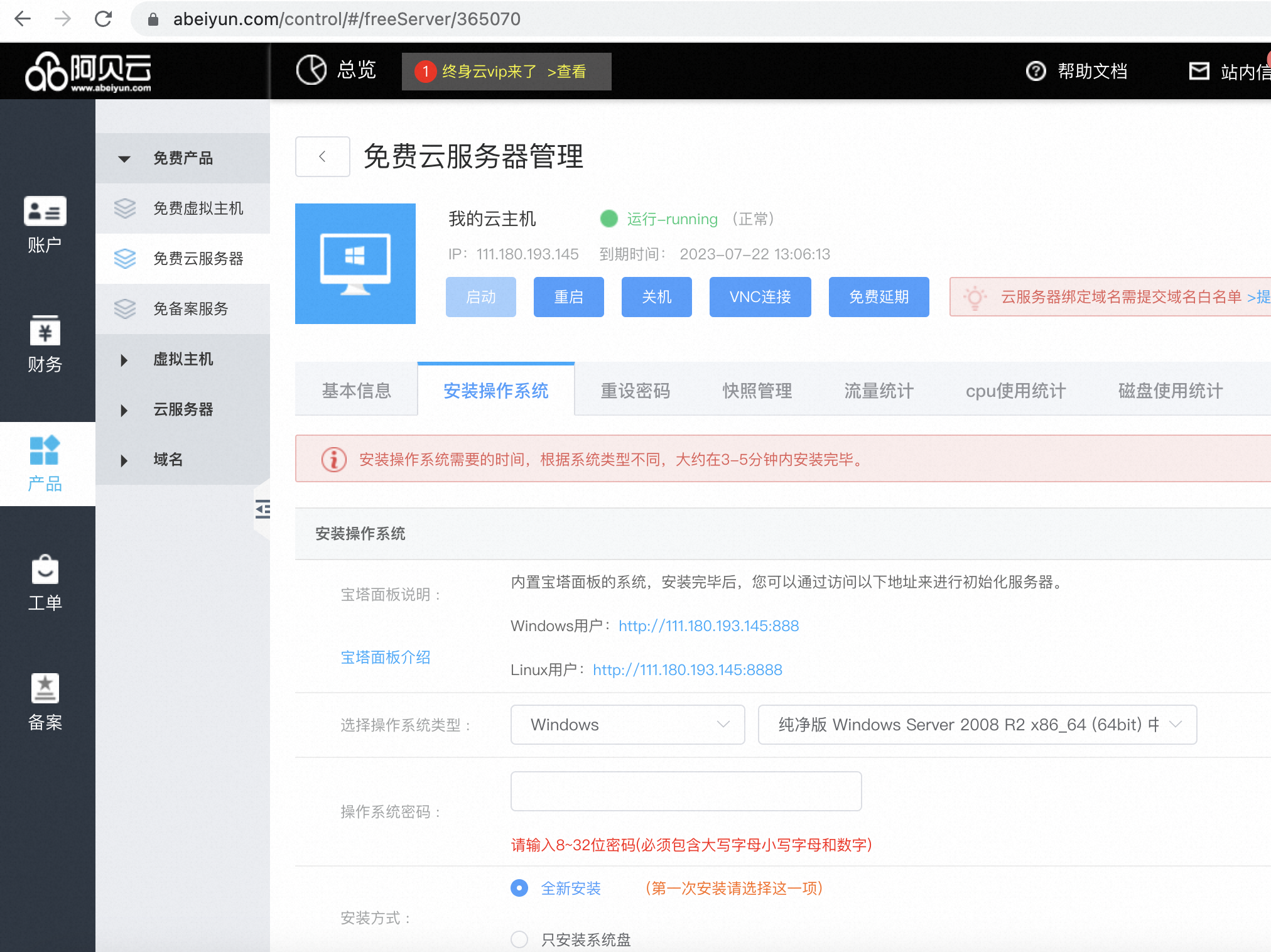 推荐一下阿贝云的免费服务器,没有流量限制,一个机还免费给一个IP,免费可以续期。系统也是可以免费装windows(这比三丰要好,三丰装windows居然要给一块钱)。总结一下,很适合初学者和中小站长。赞,希望做的更好给大家分享一个可以永久免费试用的云电脑。