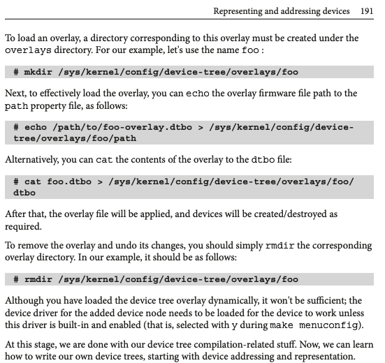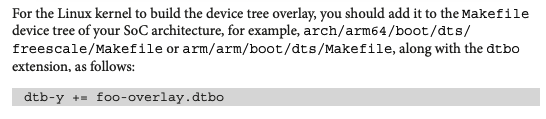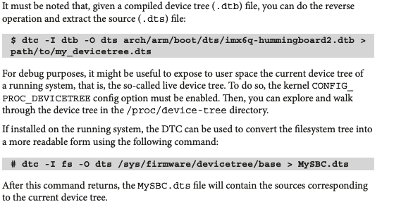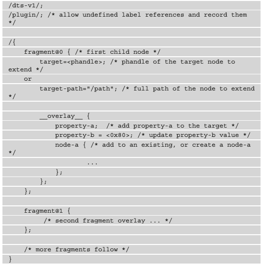 The device tree (also referred to as DT) comes in two forms. The first is the textual form, which represents the sources (also referred to as DTS). And the second is the binary blob form, which represents the compiled device tree, also referred to as DTB (for device tree blob) or FDT (for flattened device tree). Source files have a .dts extension, while the binary forms have either a .dtb or .dtbo extension. .dtbo is a particular extension that is used for compiled device tree overlays (DTBO means device tree blob for overlay), as we will see in the next section. There are also .dtsi text files (where the i at the end means "include"). These host SoC-level definitions and are intended to be included in .dts files, hosting the board-level definitions.