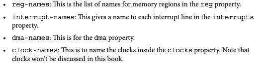 reg = <base0 length0 [base1 length1] [address2 length2] ... >. Here, each tuple represents an address range used by the device.