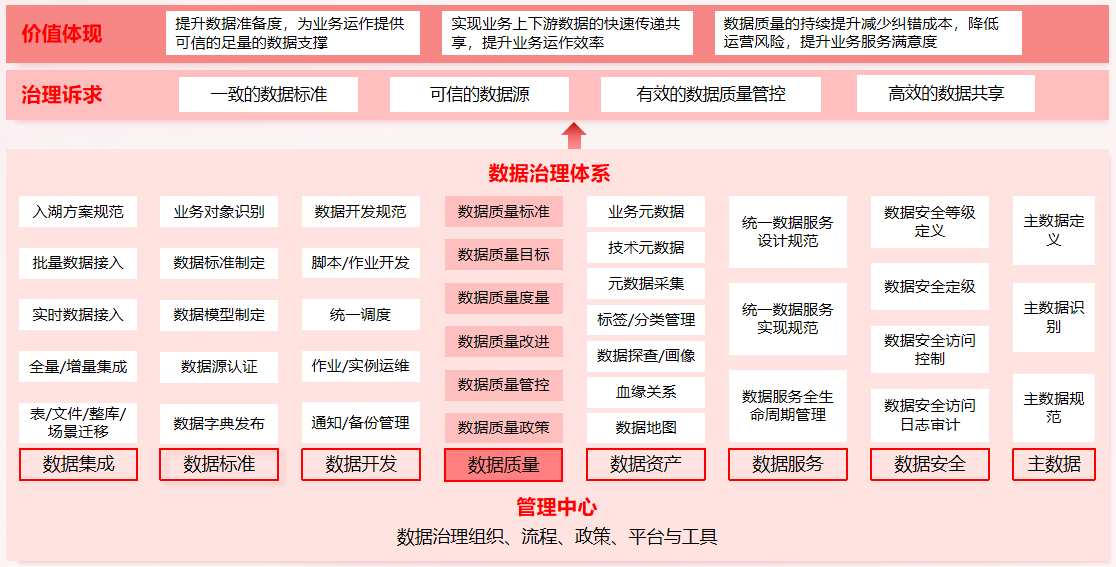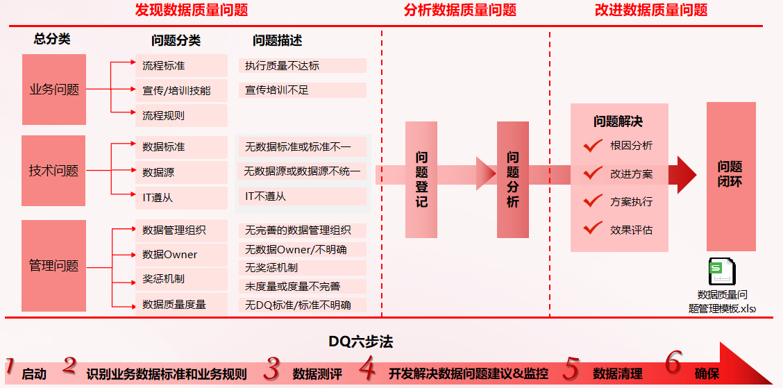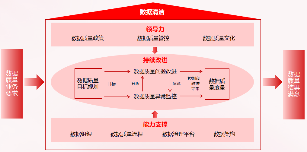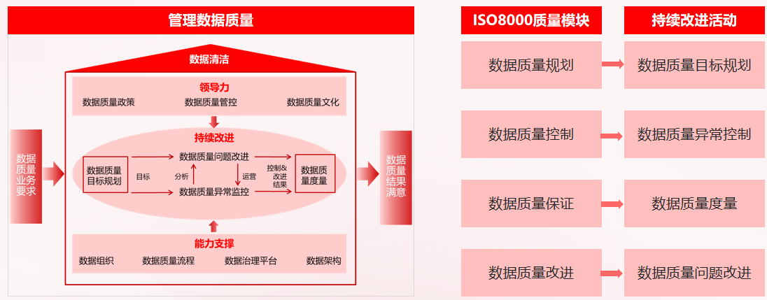 基于数据管理体系和ISO8000的质量模块,设计“数据质量问题改进”、“数据质量异常控制”和“数据质量度量”的持续改进活动,实现数据清洁。