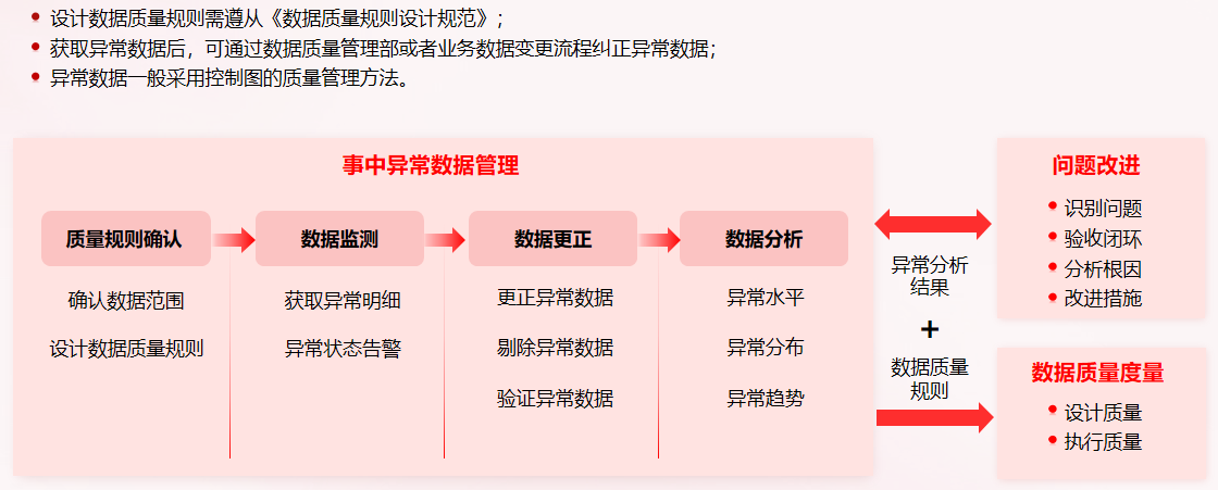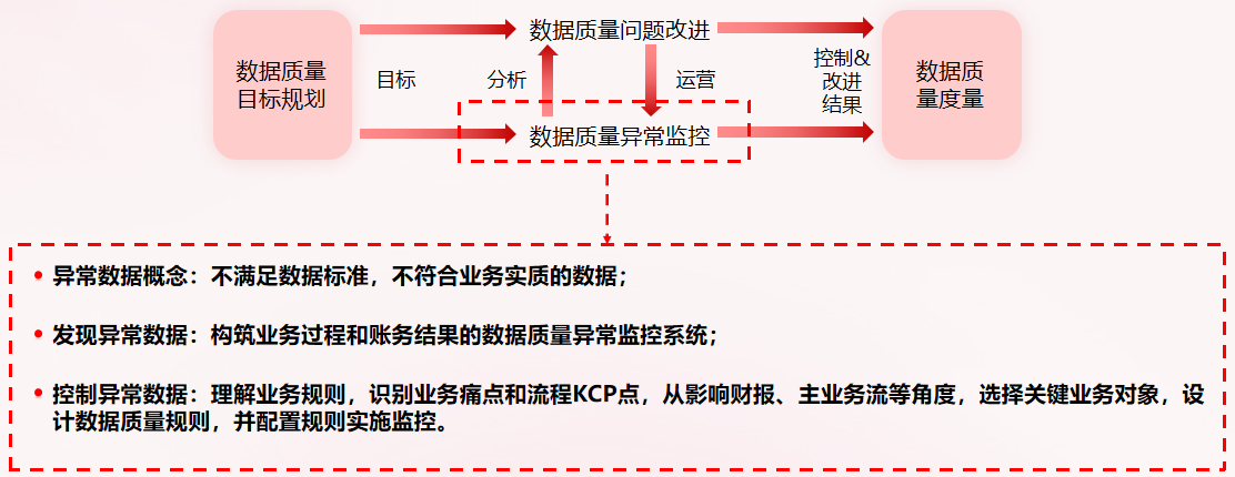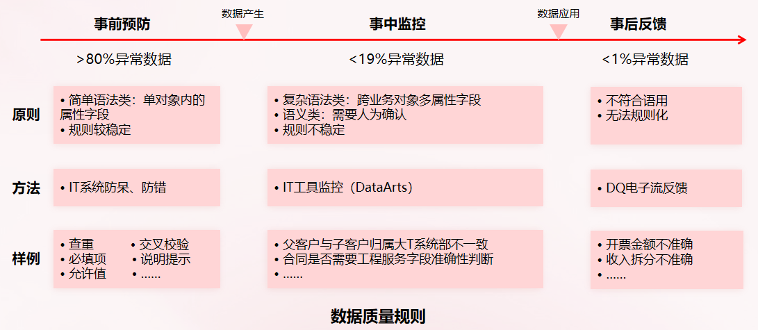基于数据质量规则,建立事前预防、事中监控、事后反馈的异常数据控制三道防线。