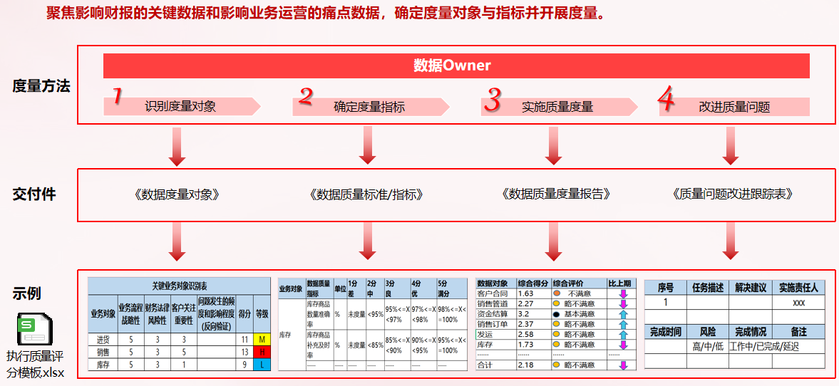 聚焦影响财报的关键数据和影响业务运营的痛点数据,确定度量对象与指标并开展度量。