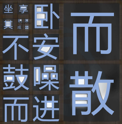 另外一道费眼睛的题,其实是汉字的反向处理(且字体仍为微软雅黑),可以先看第三个窗户,解出“眉开眼笑”得出每一四个窗户需要提取的都是空白格子中的字,具体解答见下图: