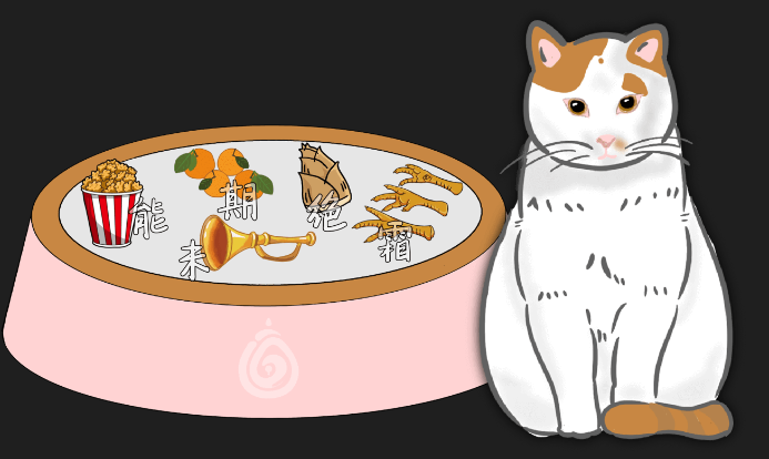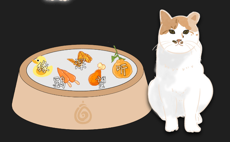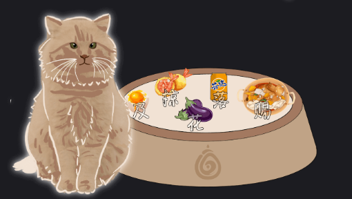 注:本题中的食物仅为谜题效果,请在给猫投喂的时候选择适宜的食物。