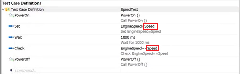 1)选择Functions——Test Case Definitions——右键Add Test Case Definitions,重命名SpeedTest,选中该Test Case,定义一个局部变量Speed,设置变量类型,如图1所示,接着编辑Test Case内容,在设定EngineSpeed值时,用局部变量Speed去代替赋值,如图2所示,最后编辑内容如图3;