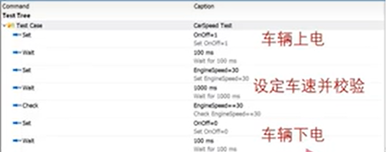 1)先将测试用例分为3个部分:车辆上电,设定车速并校验,车辆下电