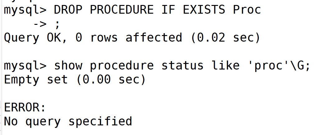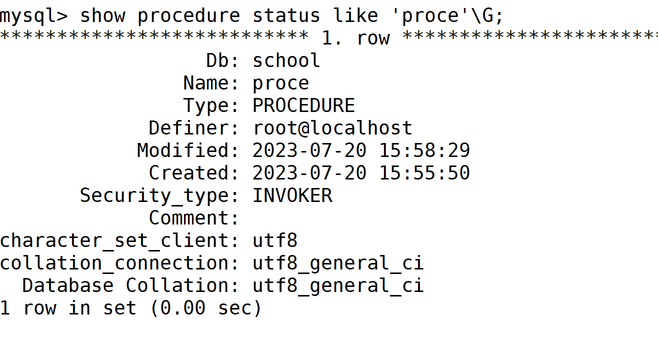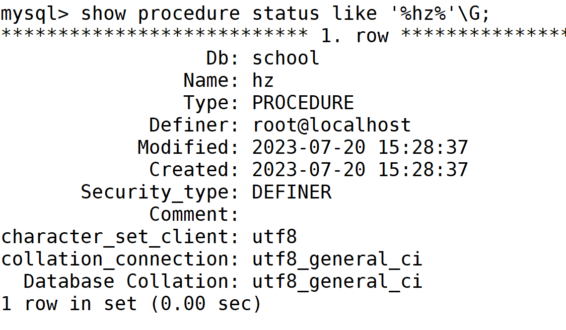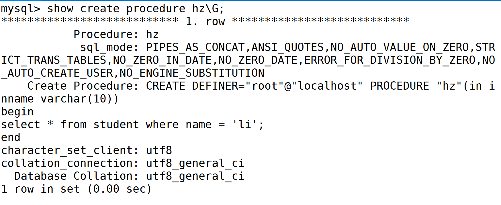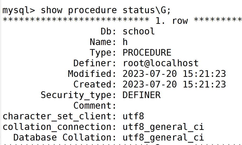 show create procedure XXX\G #查看某个储存过程的具体信息