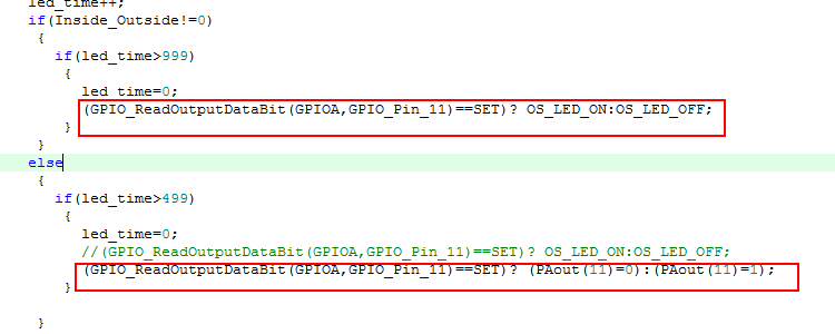 //(GPIO_ReadOutputDataBit(GPIOA,GPIO_Pin_11)==SET)? (PAout(11)=0):(PAout(11)=1);