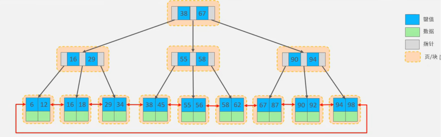 MySQL索引数据结构对经典的B+Tree进行了优化。在原B+Tree的基础上,增加一个指向相邻叶子节点的链表指针,就形成了带有顺序指针的B+Tree,提高区间访问的性能。