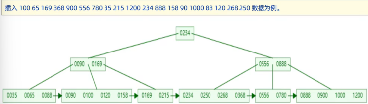 以一颗最大度数(max-degree)为4 (4阶)的b+tree为例: