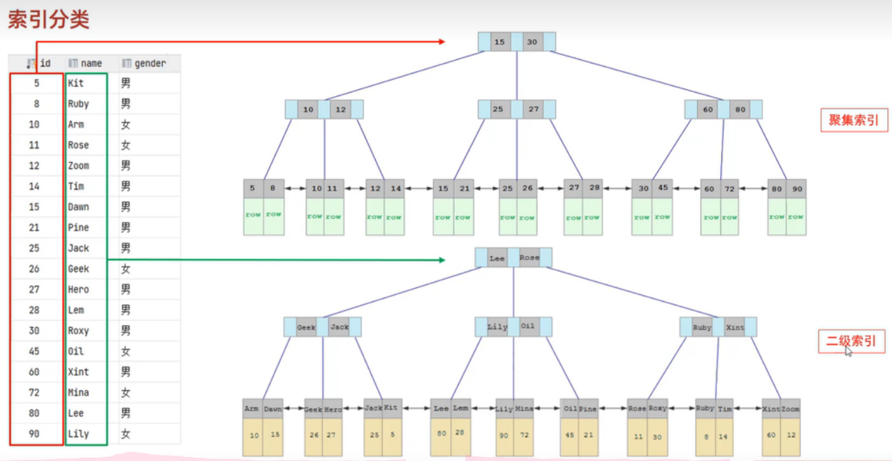 在InnoDB存储引擎中,根据索引的存储形式,又可以分为以下两种: