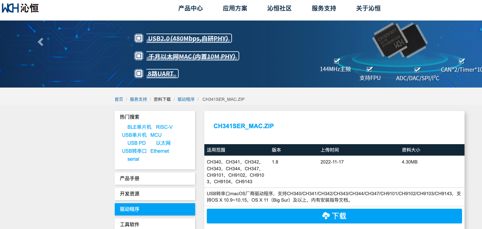 下载驱动:https://www.wch.cn/download/CH341SER_MAC_ZIP.html