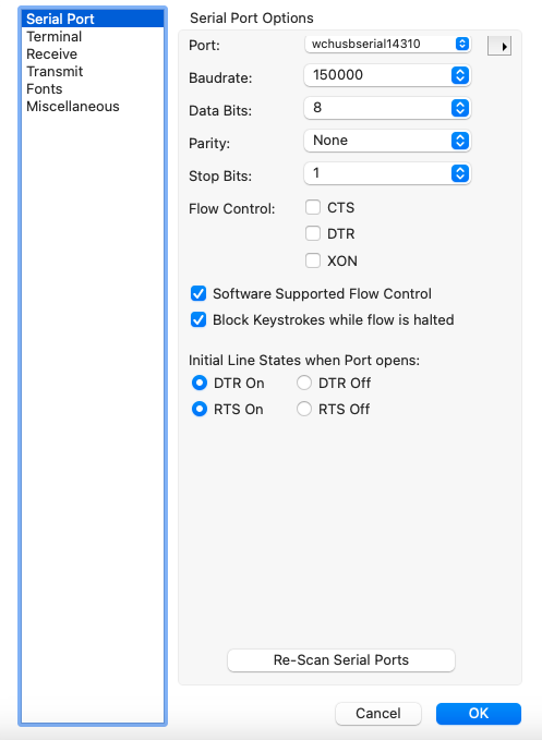 coolterm 软件点 rescan,上面就多一个 usbserial;