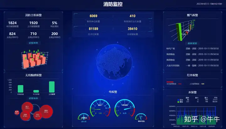 10、消防监控大数据可视化大屏模板