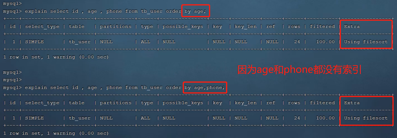 explain select id,age,phone from tb_user order by age desc , phone desc;