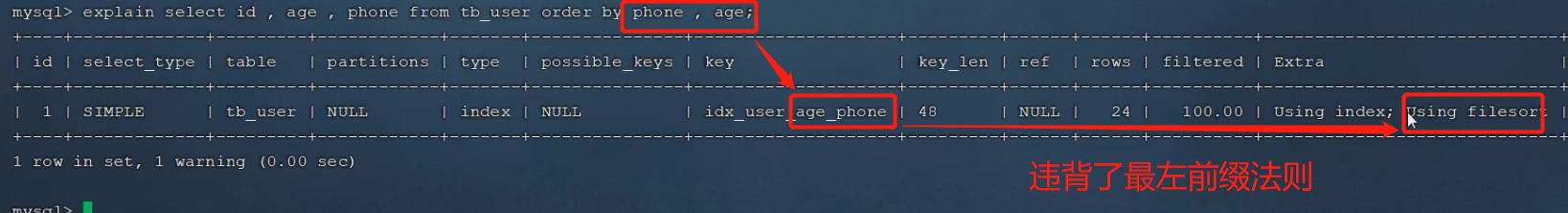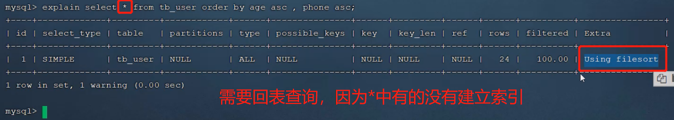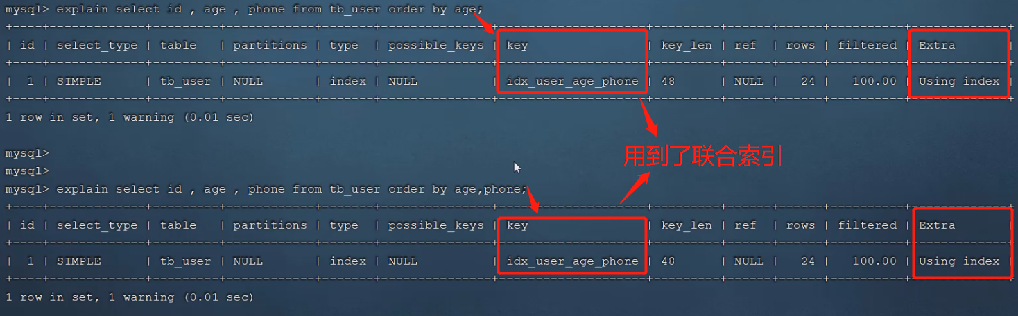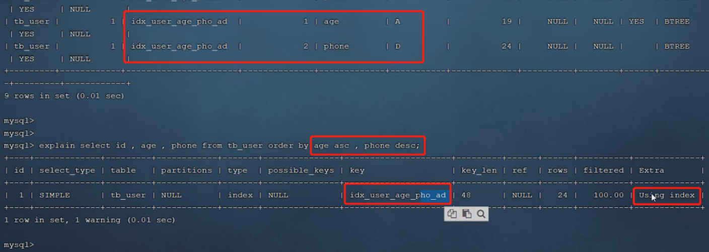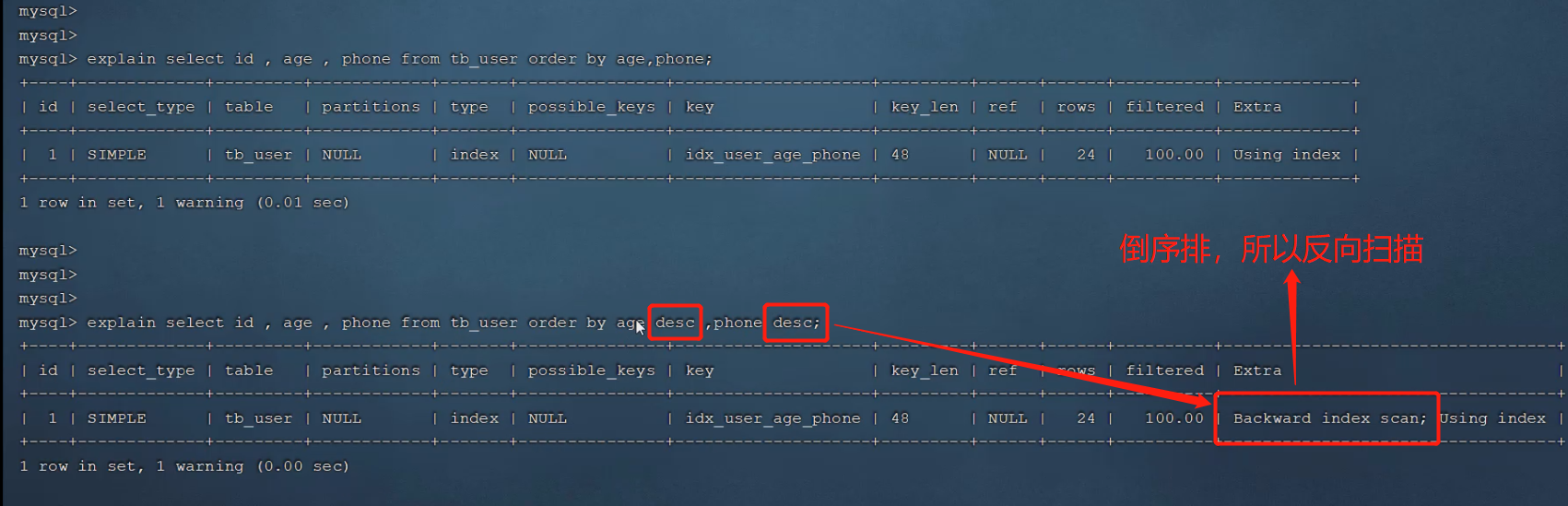 explain select id,age,phone from tb_user order by age asc , phone desc;