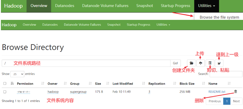 同样,在web页面也能查看HDFS文件系统的内容