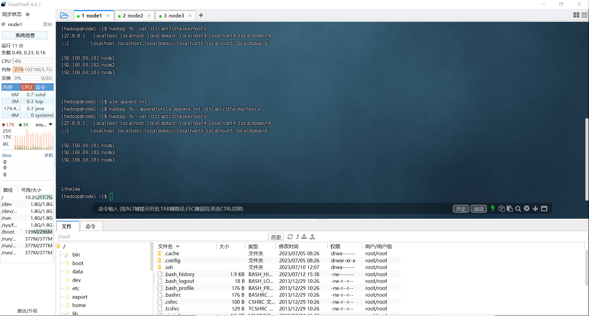 2023.7.17 实操 使用命令操作HDFS文件系统