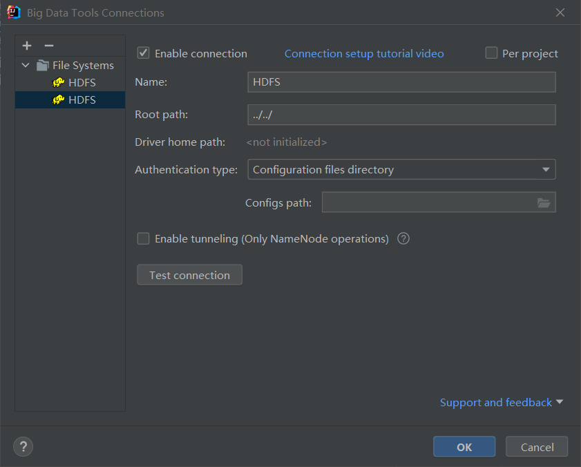 点击Test connection后进行测试,显示绿色即为成功