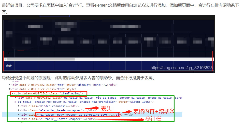 解决element UI中el_table的合计栏在滚动条下方问题