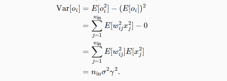 Xavier初始化是一种常用的参数初始化方法。我们假设神经网络某一层具有均值为0,方差为γ2的输入,以及该层的权重均值为0,方差为σ2。那么,在没有激活函数时可以计算出该层的输出