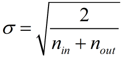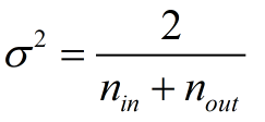 于是,我们有,保持输出的方差与输入的方差相等,即ninσ2γ2 = γ2 的方法是:让ninσ2 = 1. 同样地,在反向传播过程中,面临着类似的问题,要让每一层的梯度的方差不变,应该保证noutσ2 = 1.这里,nin和nout是该层输入神经元的数量和输出神经元的数量。显然我们难以同时满足这两个条件,因为网络不可能按照满足这个条件来设计,网络的设计必会有一些层,其输入神经元的数量与输出神经元的数量是不相等的。那么怎么办呢?可以做一个权衡,让ninσ2 + noutσ2 = 2,即:
