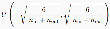 也就是说,当某一层有nin个输入神经元,并且有nout个输出神经元时,Xavier参数初始化方法是让我们将这一层的参数初始化为均值为0,方差为2 / nin + nout 的高斯分布。或者初始化为均匀分布,值域为: