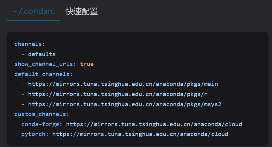 复制下来,在Anaconda Powershell Prompt中输入notepad .condarc,粘贴刚刚复制的文本,保存,然后命令行输入conda clean -i # 清除源缓存,以启用镜像源