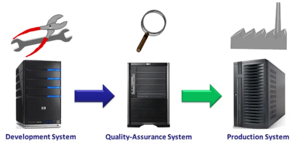 下图是变更在开发,测试和生产系统之间的流动示意图。