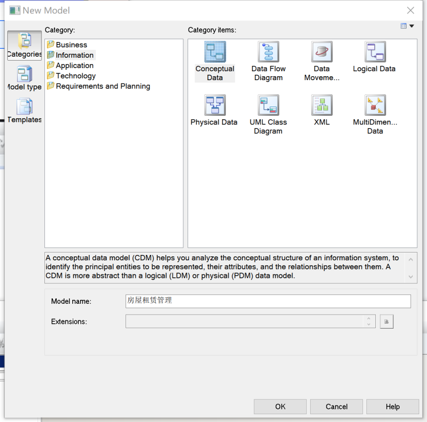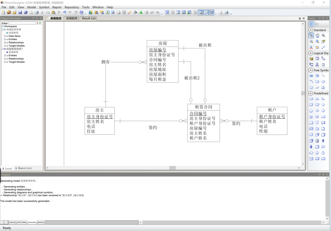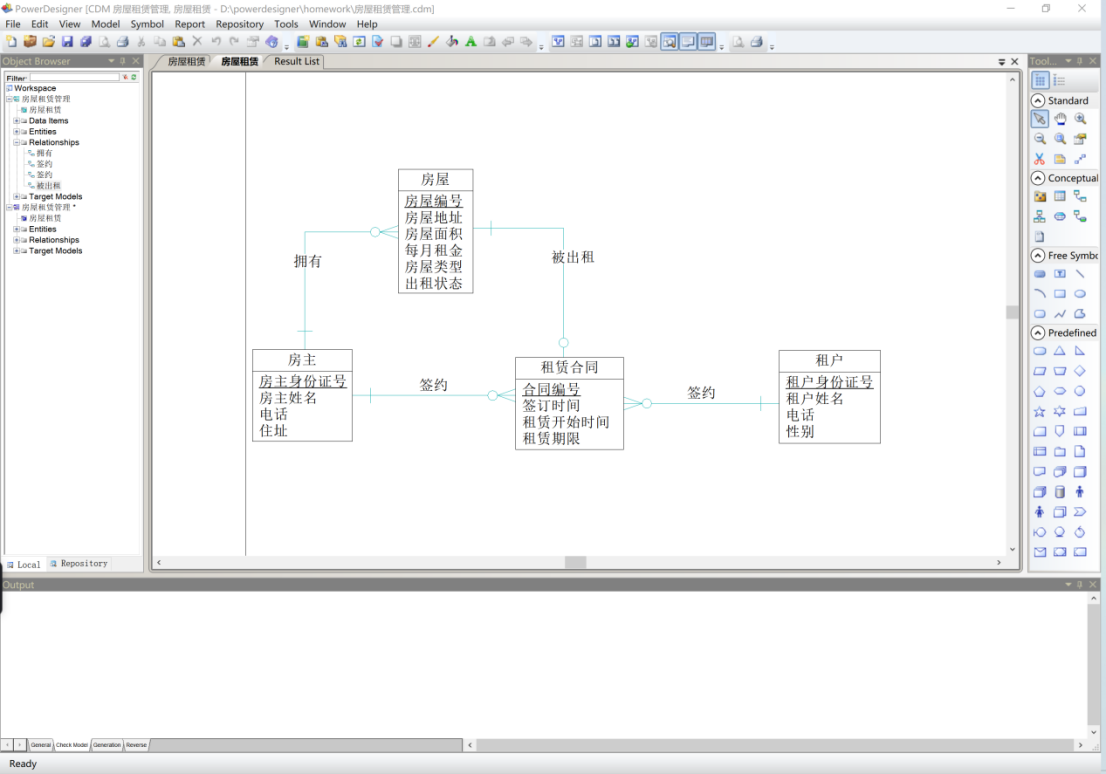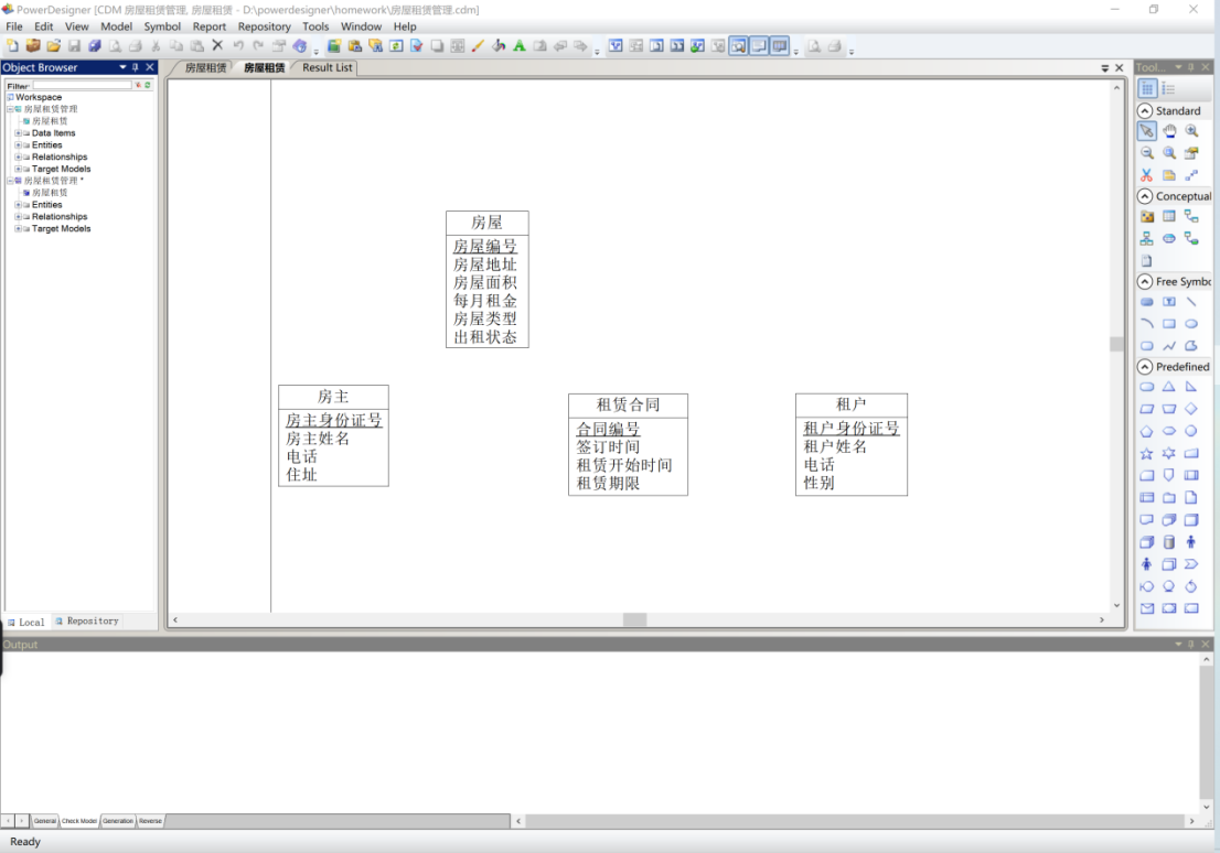 - 针对房屋租赁管理系统数据需求,使用Power Designer建模工具,设计房屋赁管理系统概念数据模型。