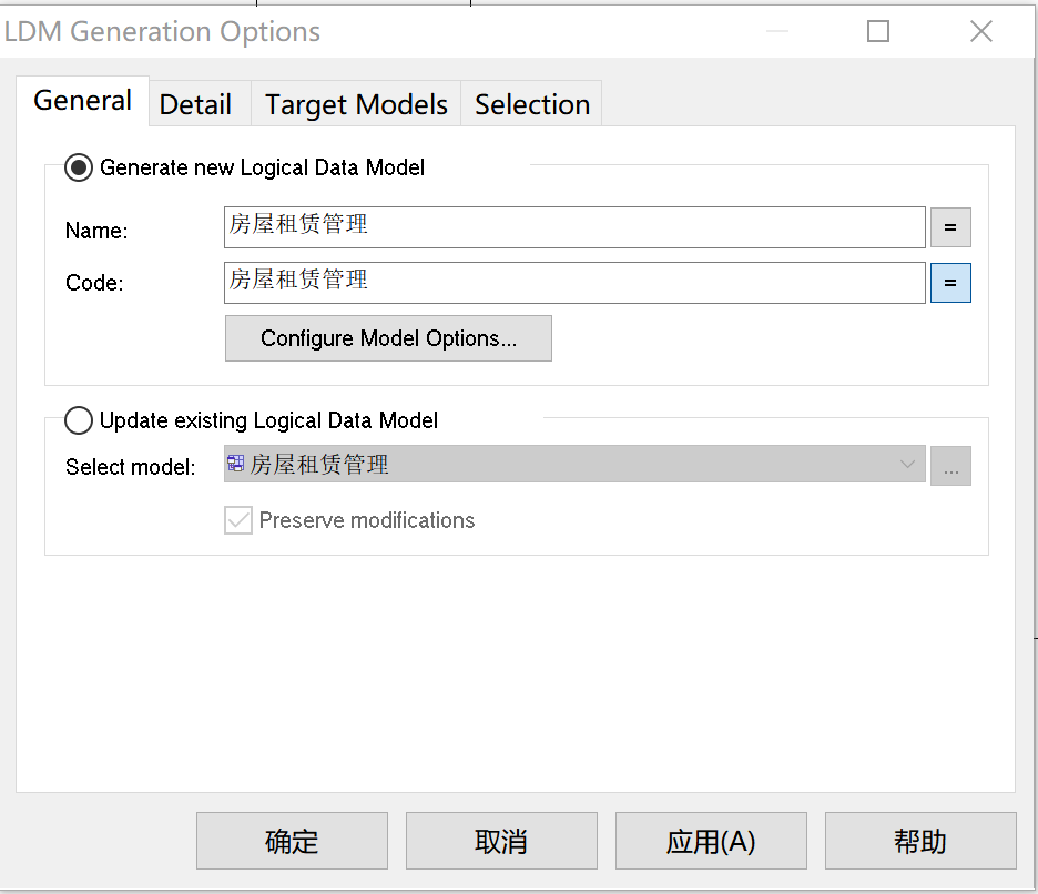 - 在Tools->Generate Logical Data Model中,选择生成一个新的LDM,如图12。