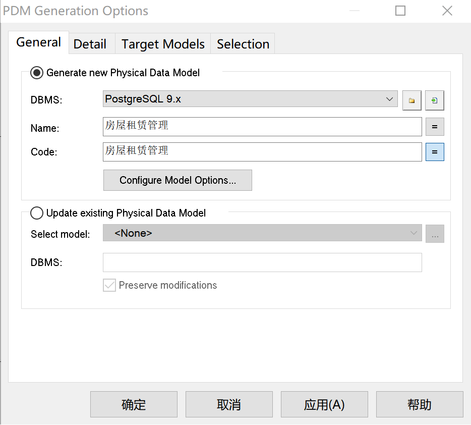 - 在Tools->Generate Physical Data Model中,选择生成一个新的PDM,如图19。