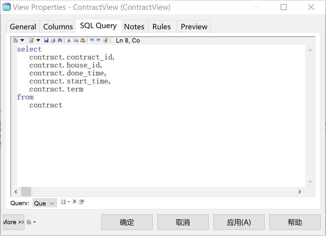 因此创建ContractView。选择“Tools->Create View”,新建一个视图,且使用限制为“只查询(query only)”,如图25所示。