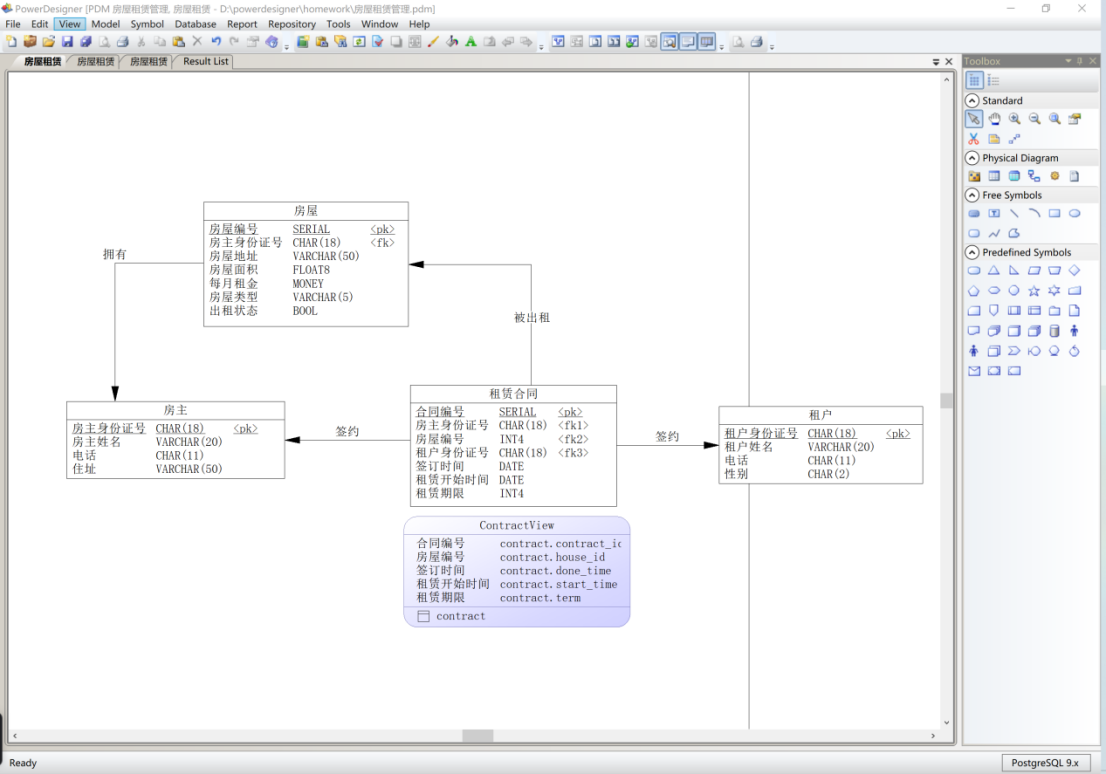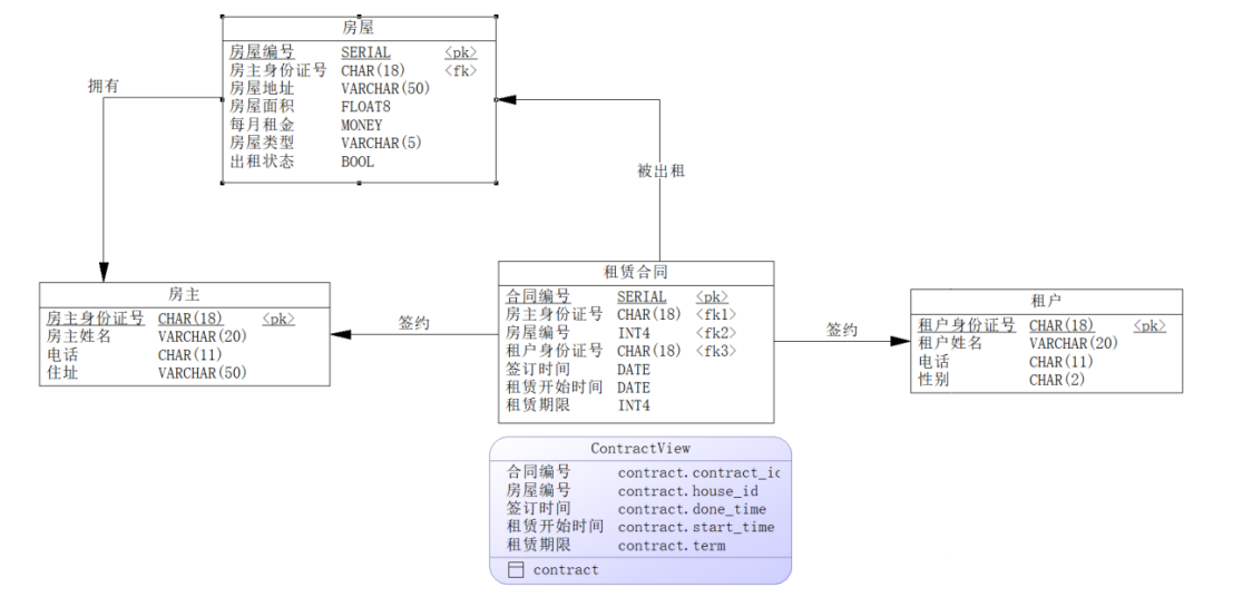 - 针对PostgreSQL数据库实现,将房屋租赁管理系统逻辑数据模型转换为系统物理数据模型设计,并进行有关索引设计、视图设计。