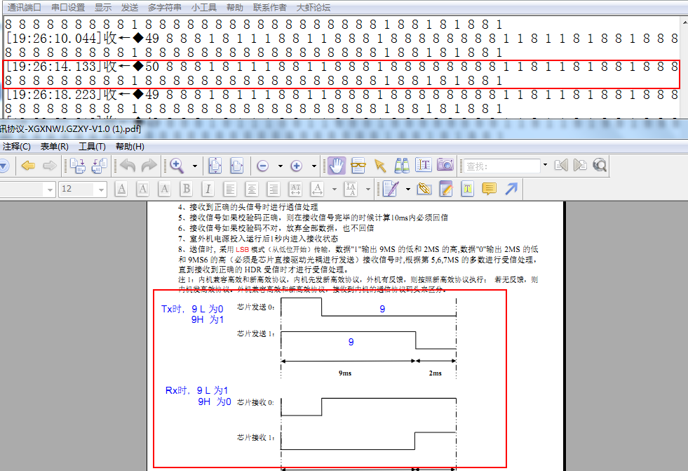 和9MS6 的高(必须是芯片直接驱动光耦进行发送)接收信号时,根据第 5,6,7MS 的多数进行受信处理,
