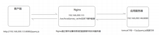http{ proxy_cache_path /usr/local/proxy_cache levels=2:1 keys_zone=itcast:200m inactive=1d max_size=20g; upstream backend{ server 192.168.200.146:8080; } server { listen 8080; server_name localhost; location / { proxy_cache itcast; proxy_cache_key itheima; proxy_cache_min_uses 5; proxy_cache_valid 200 5d; proxy_cache_valid 404 30s; proxy_cache_valid any 1m; add_header nginx-cache "$upstream_cache_status"; proxy_pass http://backend/js/; } } }