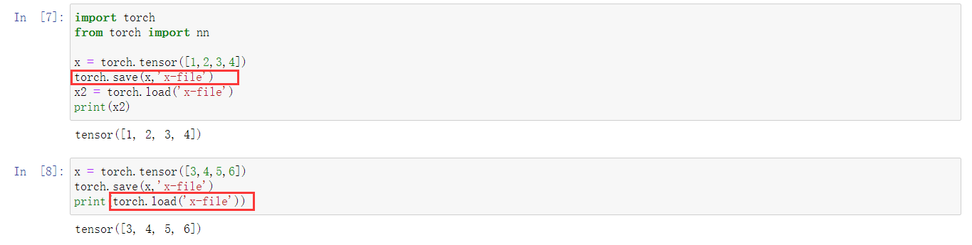 我们可以使用torch提供的函数torch.save以及torch.load对张量进行保存和加载。