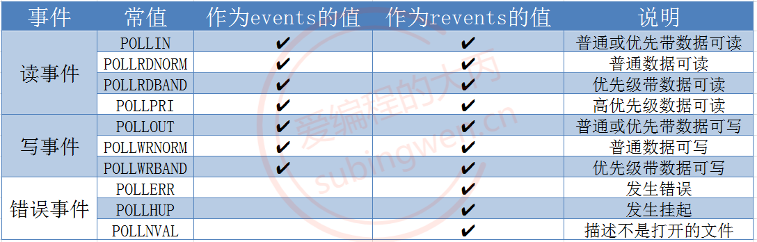 revents:这是一个传出参数,数据由内核写入,存储内核检测之后的结果