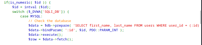 在DVWA的SQL injection中,查看不同等级的源代码。