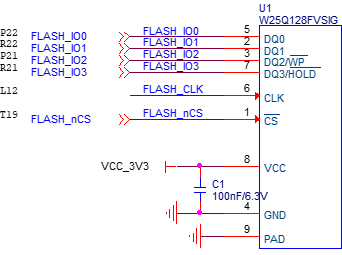 MLK-S02开发平台具有一片128M-bit/16M-byte 的FLASH,型号是W25Q128FV。FLASH可用于保存数据和代码,该flash支持标准串行外设接口(SPI)。