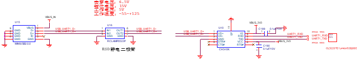 开发平台具有一路USB UART串口,其串口芯片为CH340K,其特点有全速USB设备接口,兼容USB V2.0,其芯片内部内置时钟,无需外部晶振。支持5V、3.3V甚至3V电源电压。