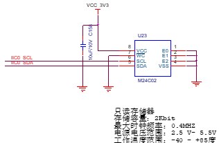 另外具有一颗EEPROM芯片,存储容量2Kbit,最大时钟频率0.4Mhz,工作电压范围2.5V-5.5V。